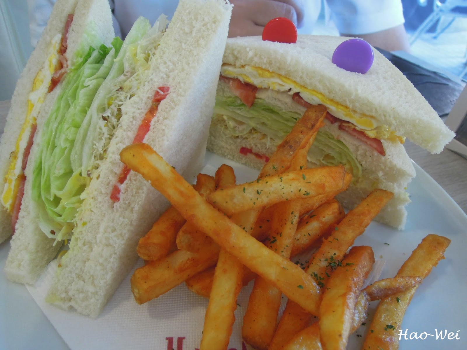 這是朋友點的套餐,兩大塊三明治以及薯條,雖然看起來是滿普通的餐點,但是份量滿可觀的,跑完3km的強者我朋友都覺得很飽。(話說才跑3km有點虛...)