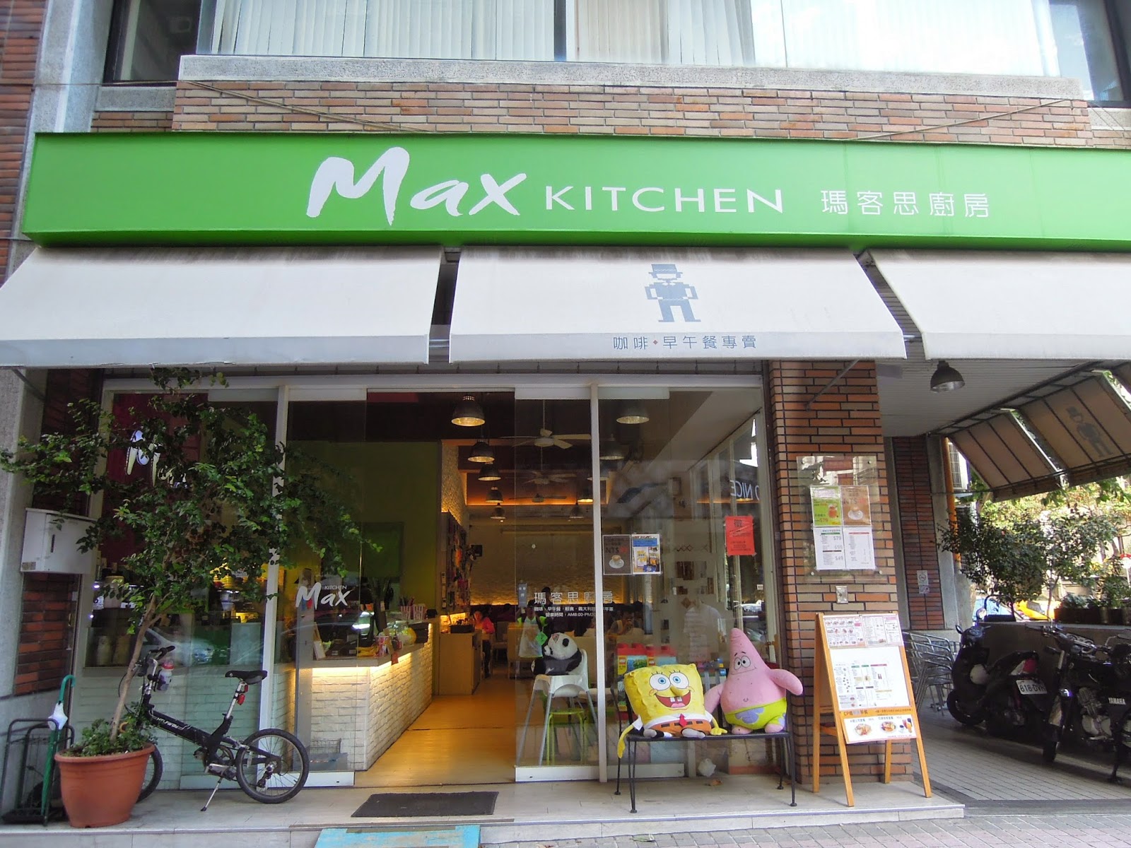 路跑結束後,一行人浩浩蕩蕩地決定去吃早午餐,地點決定是「Max瑪客思廚房」。「Max瑪客思廚房」其實滿好找的,位於台中市政府附近,從市府走過去約5~10分鐘。這間店之前就有經過了,也成功吸引我的目光,大概是他的布置吧。外面有海綿寶寶和派大星坐鎮,整個就很有趣。