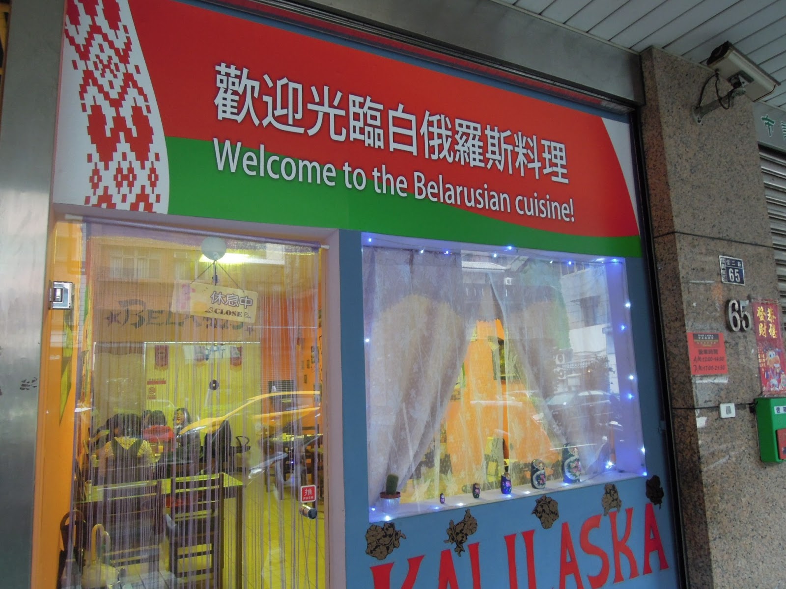 一進到店裡面,就感受到濃濃的異國風味,許多具有俄羅斯特色的圖案就貼在牆上,此外,其也用了許多白俄羅斯的鈔票當作擺飾,牆上也有一個相當大的白俄羅斯與其鄰近國家的地圖,好像怕台灣人不太知道這個位於歐洲的國家。(確實應該滿多台灣人會誤以為其是俄羅斯的...)